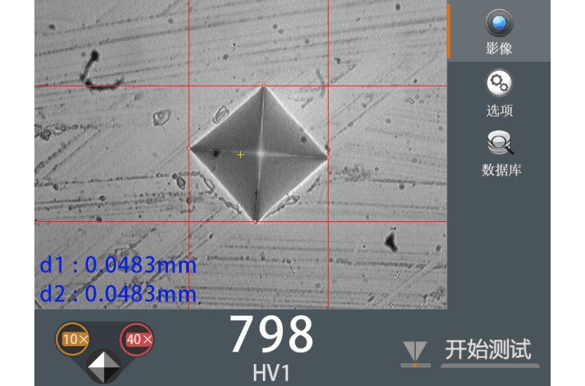 数值显示 | D1、D2 值、HV指示、硬度值、转换值、保持时间、测试次数 |