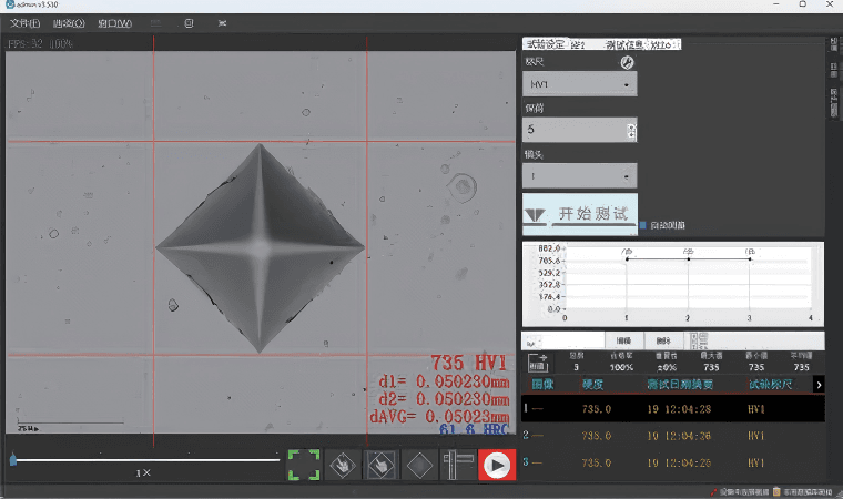 自动测量 | 自动或手动捕获压痕,测量压痕的对角线长度,并计算相应的维氏硬度值。 |